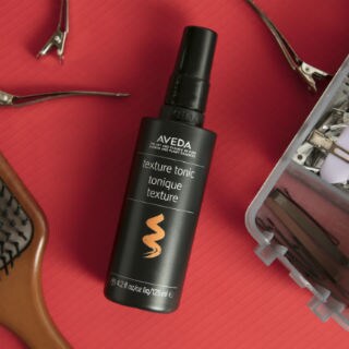 Sarah’s tip: To create texture on straight hair, spray Texture Tonic all over dry hair and wrap small sections around a small iron or wand. While hair is cooling, spray Texture Tonic all over again. Loosen curls with your fingers to the desired softness. Texture Tonic allows straight hair, which doesn’t usually hold a curl, to take on a textured style that lasts.