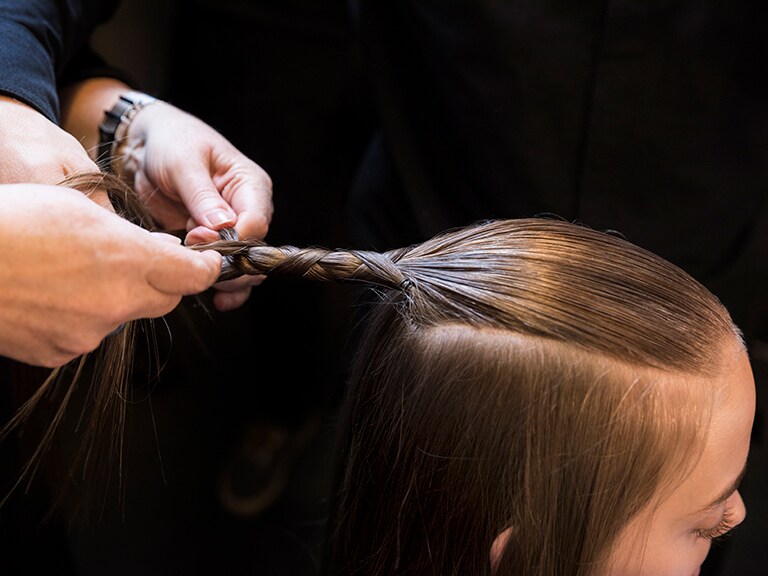 “It’s ‘done, undone’ hair,” Frank said. The “Tibi girl” always looks like she’s not trying too hard, and that’s what we love about the hair created for the show; it’s fun, it’s casual, and you can seriously wear it everywhere.