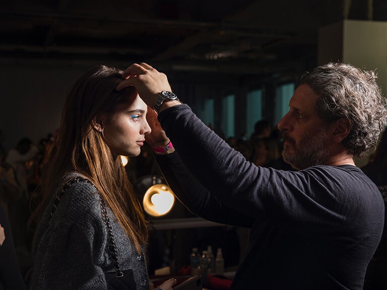 For A Détacher, dynamic duo Janell Geason (Global Artistic Director for Makeup) and Jon Reyman created a vibrant “bird of paradise”-inspired eye, paired with an edgy, punk-rock hair look.