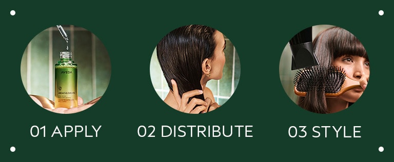 • Before heat styling: Protect your hair with a 1-2 drops of hair oil before blow-drying, or using straighteners or curling irons.